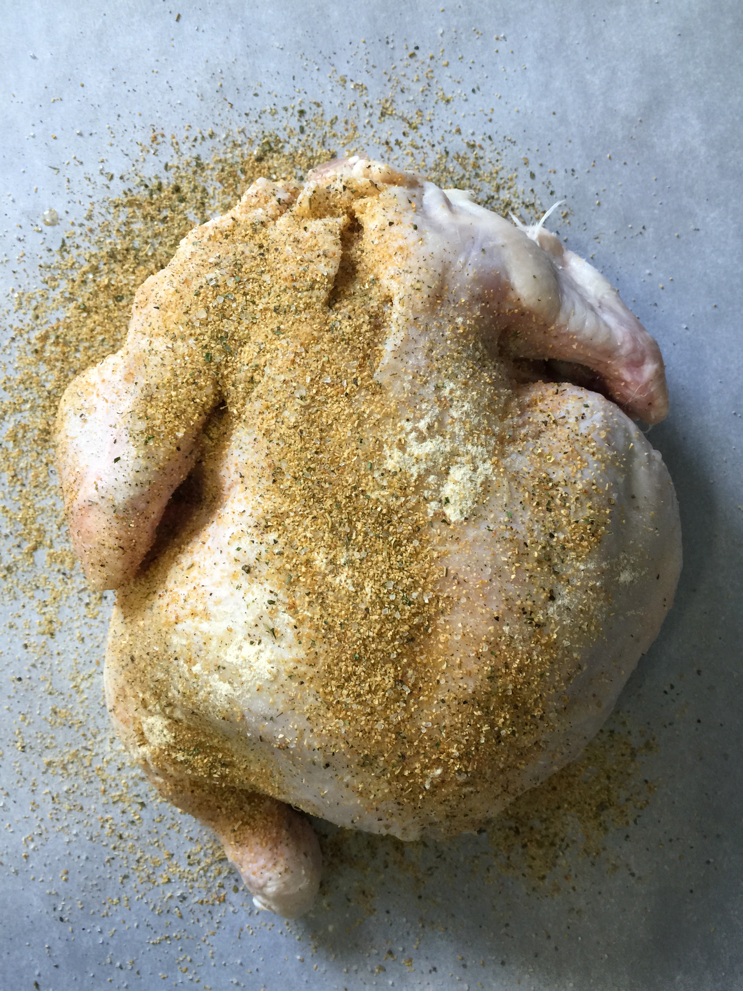 SWEET & SPICY CHICKEN: 1 whole chicken (about 2-3 pounds), 4 cloves of minced garlic, 1/4 cup sriracha sauce, 1 tablespoon sesame oil, 1/4 cup tomato paste, 3 tablespoon rice vinegar, 1/3 cup soy sauce, 2 tablespoons honey.