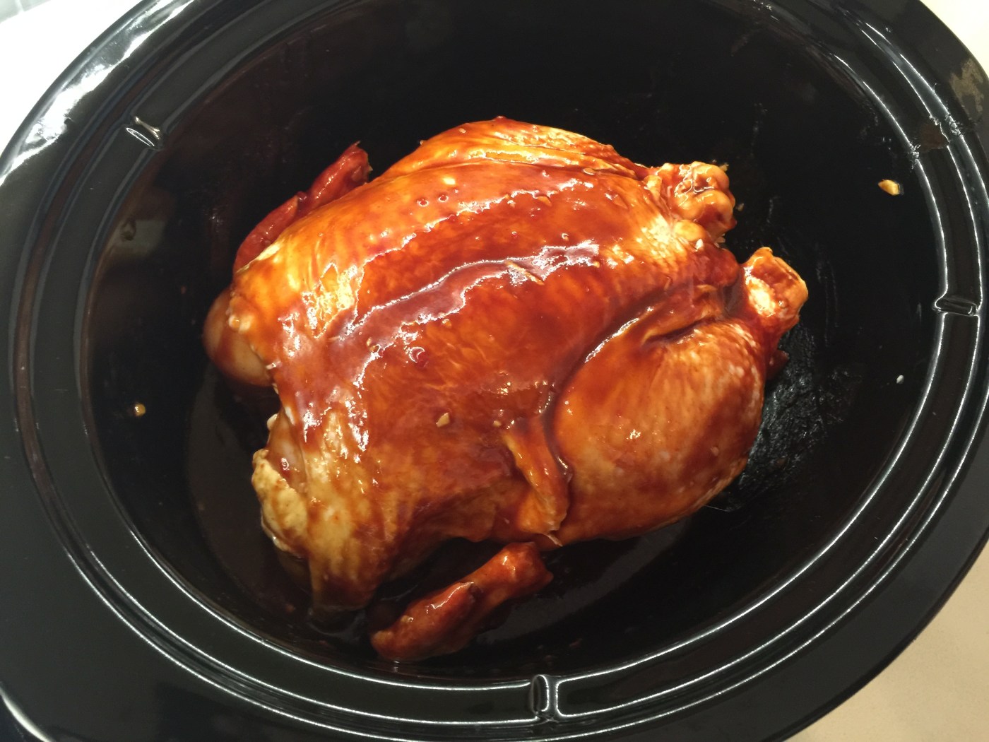 - Pour over chicken in the crock pot.